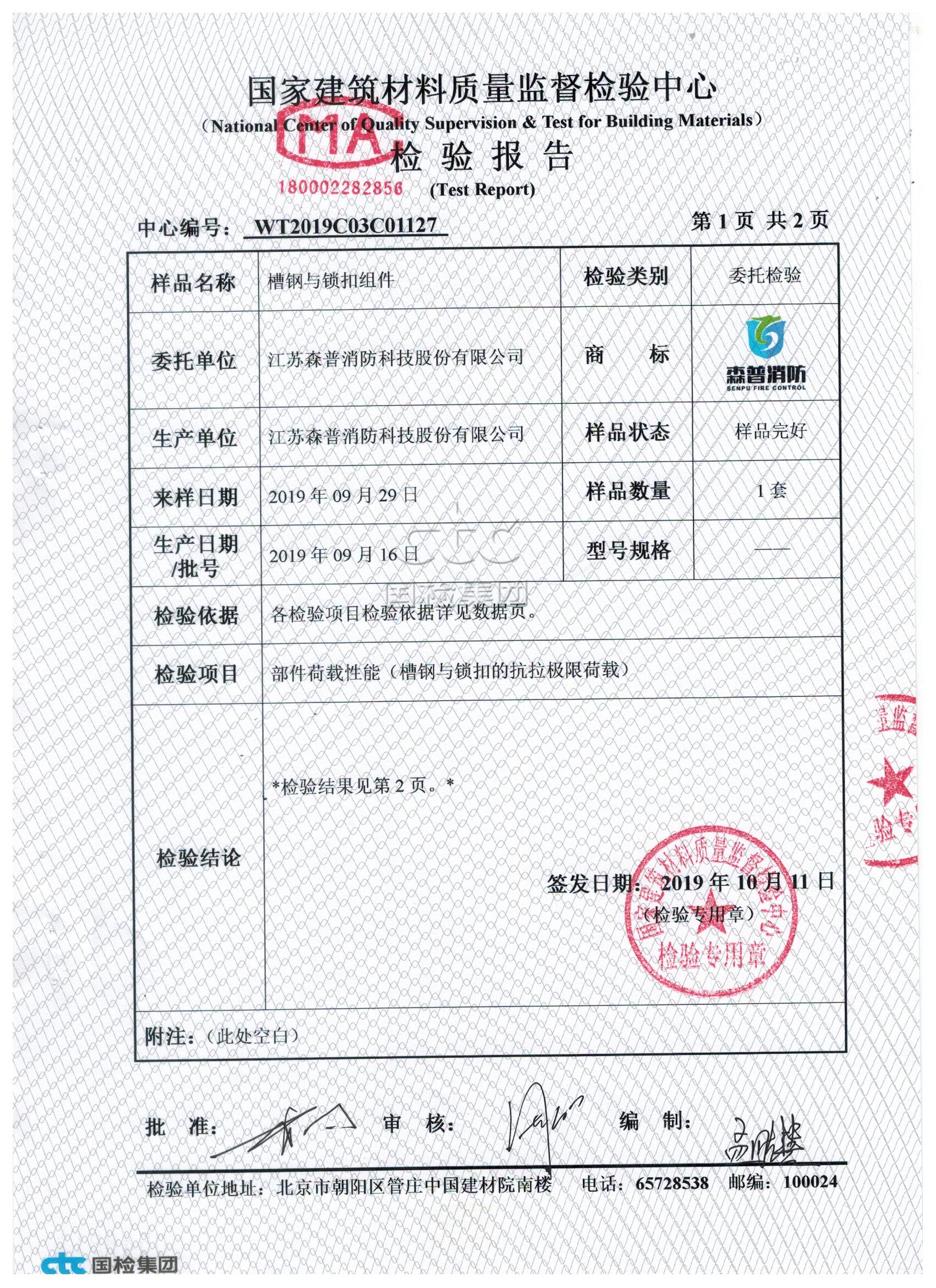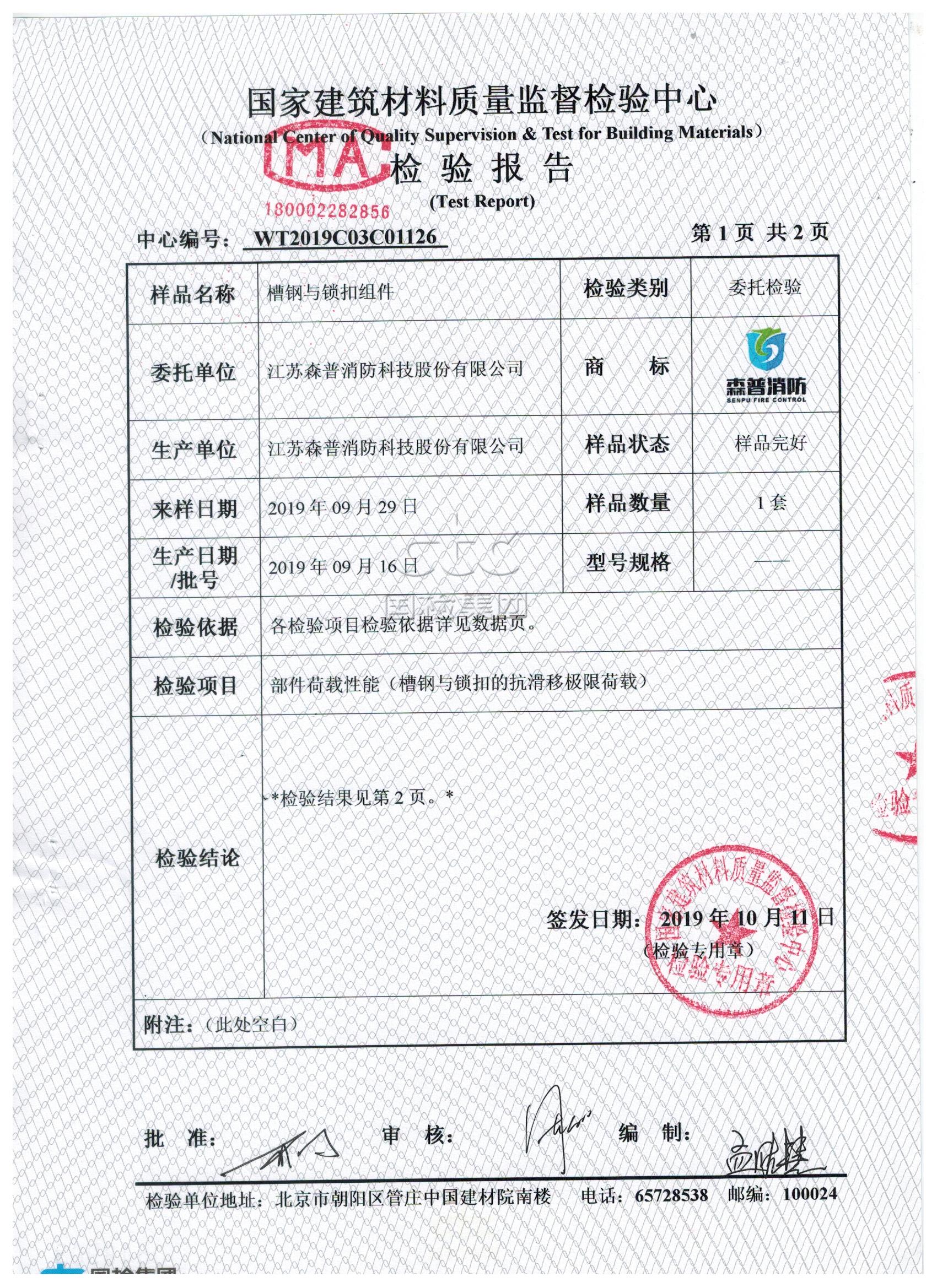 槽鋼與鎖扣組件-檢驗報告-江蘇森普消防科技股份有限公司